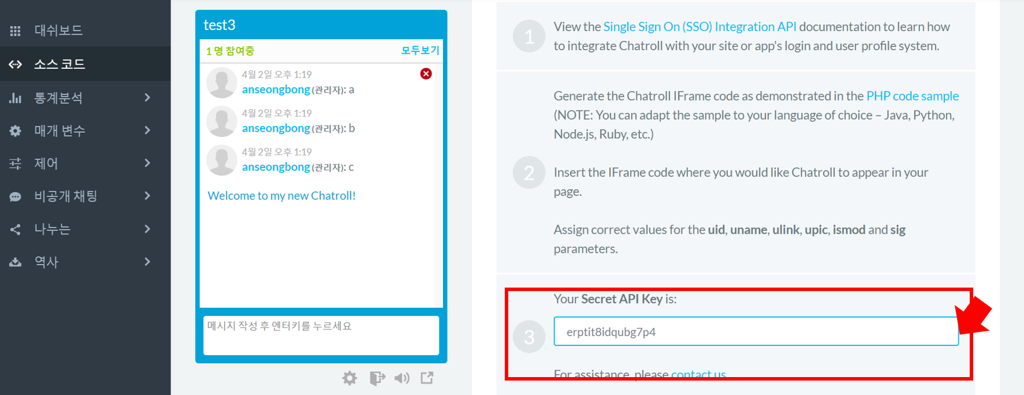 챗롤 API Key - 담당 영업에게 전달해주시기 바랍니다.