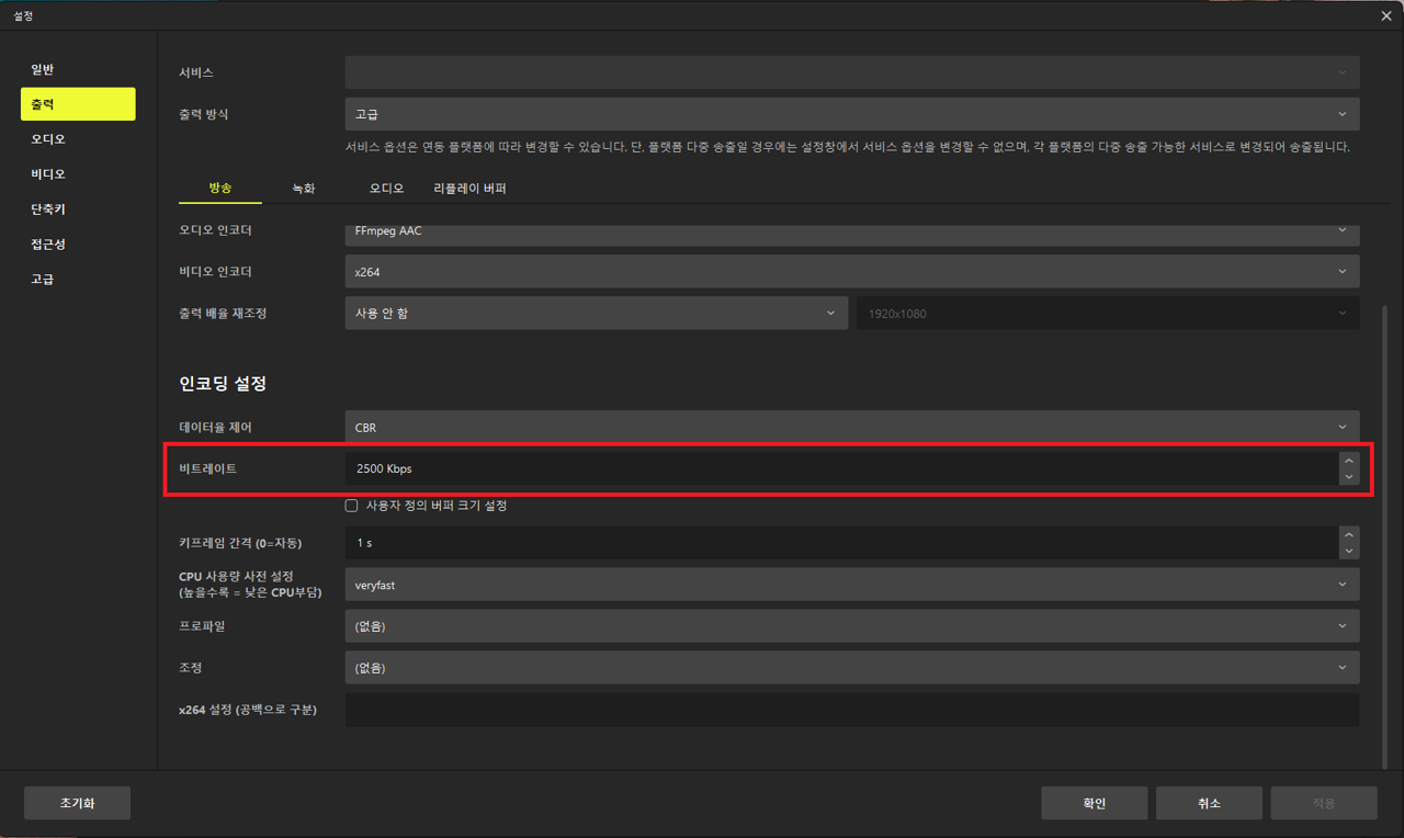 기본 방송 송출 설정