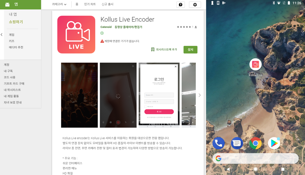 - 설치 후 구동 시 Kollus Live 어플리케이션의 카메라, 마이크 접근 허용 팝업 시 승인이 필요합니다. 2019년 2월 현재 IOS, Android 모두 지원합니다.