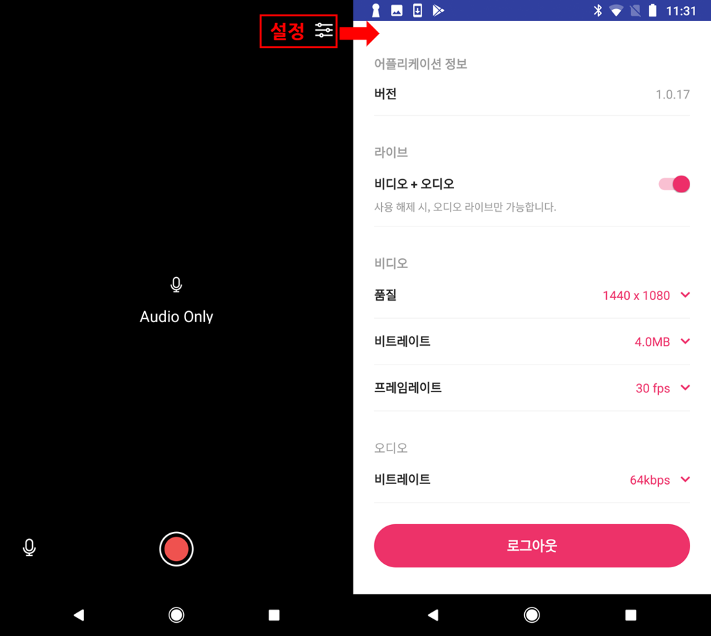 - 참고로, Kollus 모바일 인코더는 AUDIO ONLY, VIDEO/AUDIO 2가지 모드로 라이브 중계를 지원합니다.